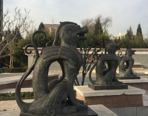 雕像非常有特色,肯定是个仿制品了,做了三个相同的铜坐龙,特别逼真。
