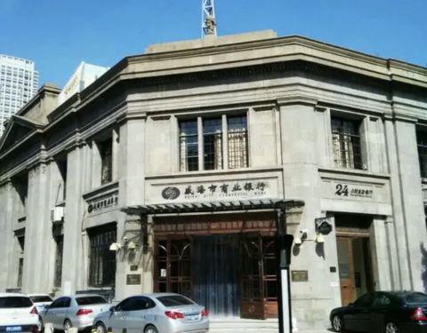 这里面变成威海银行,只能从外面看看,正面和表面原怡和洋行大楼一样,总体建筑很对称,确实很大气,可能和历史有关,附近还有许多银行