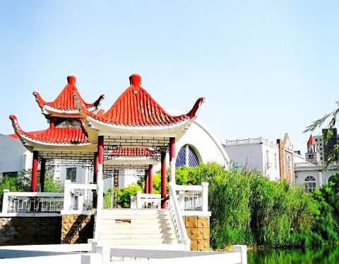 这个公园坐落在天津市河东区,由原来第二工人文化宫的一部分改造而成,主要依靠秀水湖以及二个湖中小岛建设,是一个休闲娱乐的好地方。