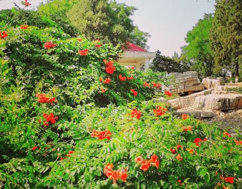 二宫公园,前广场两侧和中央分别修建了宽广的花坛,里面栽满了各色花卉