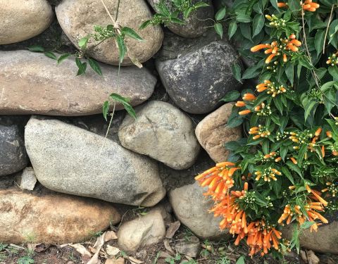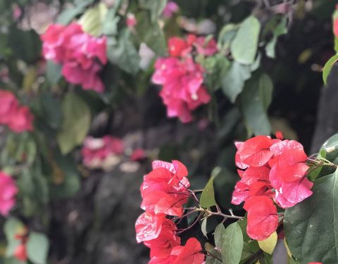 大屏山郊野公园位于海沧区海沧大桥下,免费。 去的时候刚下过小雨,空气清新,边走边看能发现不少美景,还碰上在这里取景拍婚纱照的新人,水雾弥漫,花草灵动,宛如仙境。 沿着阶梯慢慢往上,一路各色的三角梅为冬日增艳不少,一花一木,一砖一石,一桌一椅皆可成景,登高望远可以看见海沧大桥,晴天视野会更开阔,但烟雨濛濛别有一番风韵。