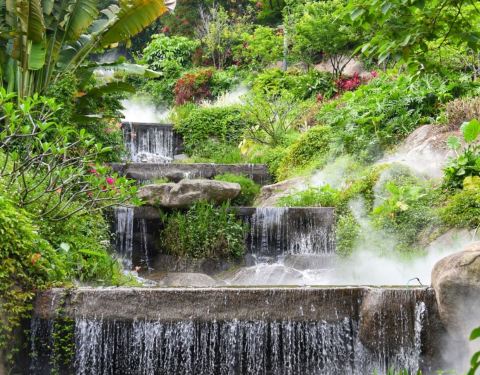 ...空气清新,边走边看能发现不少美景,还碰上在这里取景拍婚纱照的新人,水雾弥漫,花草灵动,宛如仙境
