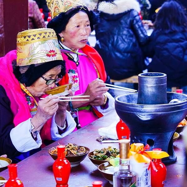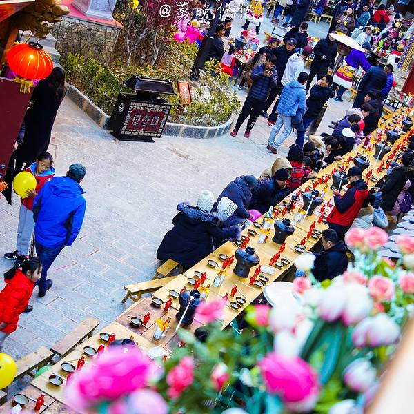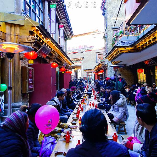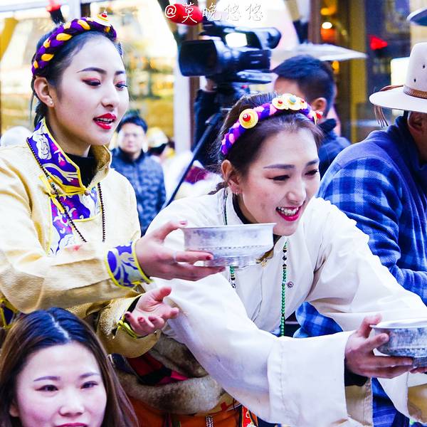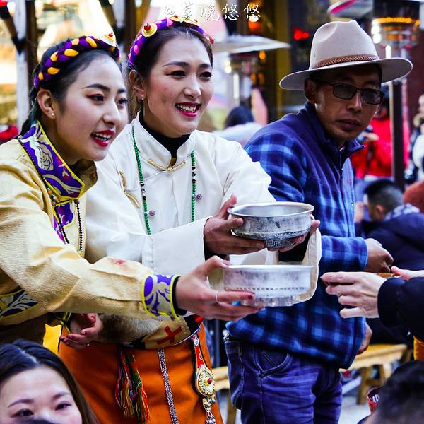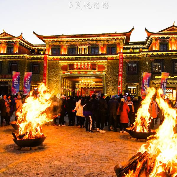 坐在一起就是一道风景线~小朋友们都对这场长桌宴充满了期盼与好奇~引得我忍不住多拍几张长桌宴不稀奇,但是数千人的跨年长桌宴,就非常值得期待了。为迎接2019年的到来,独克宗花巷特别组织了这场盛大的跨年盛会,让广大游客可以在有着人间净土之称的香格里拉,体验最淳朴,最自然,最浓郁的藏式生活...长桌宴不稀奇,但是数千人的跨年长桌宴,就非常值得期待了。为迎接2019年的到来,独克宗花巷特别组织了这场盛大的跨年盛会,让广大游客可以在有着人间净土之称的香格里拉,体验最淳朴,最自然,最浓郁的藏式生活。晚宴即将开始之前,独克宗花巷的卓玛小姐姐们便身着盛装,在门口载歌载舞迎接四方来客~老奶奶们在墙边晒着太阳,聊着天,悠闲自在,她们还是晚上篝火跳锅庄的主角之一呢。其他宾客们也陆续就座,现场还邀请了香格里拉特殊学校的同学们一起参与这场跨年盛会。小朋友们都对这场长桌宴充满了期盼与好奇~工作人员忙碌的身影也处处可见,这个时候他们正忙着在上菜,青稞酒,藏式八大碗等一大波当地的美食正在上线~跳锅庄的奶奶们围坐一起,等待开宴,她们穿的衣服都很漂亮~坐在一起就是一道风景线~引得我忍不住多拍几张~这也是我第一次同来自国内外不同地区的陌生人一起吃饭,虽然都不认识,但坐在一起之后就像朋友一样,其乐融融的,相信此刻大家感受到快乐的频率是一样的,真的很神奇呀~长桌宴的主菜是藏香八宝火锅,要说这道菜的特别之处,首先就是锅了,就是前面所提到的尼西黑陶,煮出来的汤底味道鲜美浓醇,非常好喝,好喝到导致我们直接把汤底喝到一滴不剩。配菜也是很丰富,有炸香酥肉,彝家红烧肉,小炒藏香猪,吹肝凉三丝,花生拼虾片,银耳扣南瓜,和很开胃消食的奶渣,吃太多肉之后吃上一口,酸酸的,纯正的藏式风味~无论大小节日,都需要酒来点缀,而在高原,肯定是喝青稞酒了~宴会期间,还加入了情景演绎,把游客们也带进了属于香格里拉的故事里~首先是独克宗花巷的城主亮相,拿着一碗酒,先干为敬以表示对大家的欢迎。卓玛小姐姐也纷纷端着酒,热情招呼着大家~彝族老奶奶笑得合不拢嘴,一直叫身边的客人多吃点~大家就在愉悦的氛围里吃吃吃,喝喝喝~随后一阵悦耳的歌声从楼上传来,原来城主的女儿在招亲,对着楼下的扎西们说,谁能接上她唱的歌,她就嫁给谁。最后就是这位帅气的扎西抱得美人归。城主家双喜临门,更加开心叫大家一定要喝得尽兴!不醉不归!所有人都在热闹的氛围里结束长桌宴,之后,等待我们的就是围着篝火跳锅庄。锅庄是藏族的一种传统民间舞蹈,节奏活泼而热烈,不受时间、地点、人数的限制,男女老幼皆可随意加入或退出跳舞队伍。随着音乐的响起,扎西跟卓玛们都甩着长袖,迈着轻盈的步伐,围成一个圆圈跳起来。他们的身姿时而优美,时而豪迈,非常欢乐,所以现场也有很多游客加入他们的队伍中,跟着他们的步伐,一起围着篝火欢跳。原本有点冷意的夜晚,瞬间就暖起来了,快乐也会传染,所有人都融入到舞蹈的海洋里,现在回想起来,每一幕都还是记忆犹新,历历在目。 展开