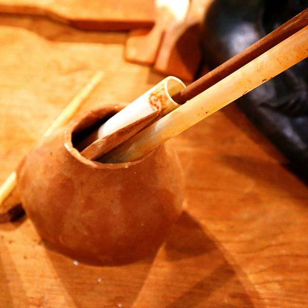 对于手艺人来说,要完成一件普通作品,耐心和技艺缺一不可。尼西黑陶的制作千百年来几乎没什么变化,一套自制的木头工具就能出件件精品。虽然看起来不花哨,但它的魅力就在于质朴、原生美。