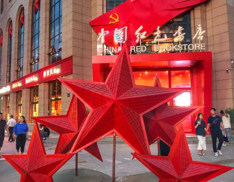 ...脚下,规模很大,广场中央还有大型雕塑(纪念长征会师)周边也是延安的商业中心,商家林立,热闹繁华