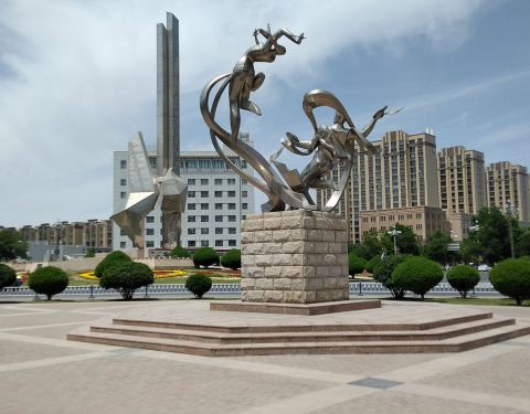 广场39米高的马踏飞燕、雄关之光、雄关之秋、冼星海塑像等标志性建筑成为嘉峪关市的象征,也是市民...