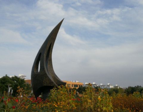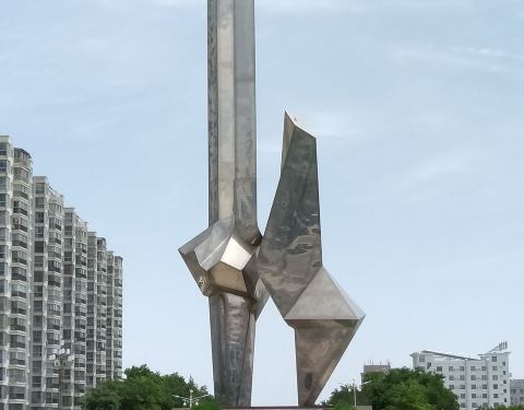 高大、精美的广场雕塑——,市民在广场休闲,游玩