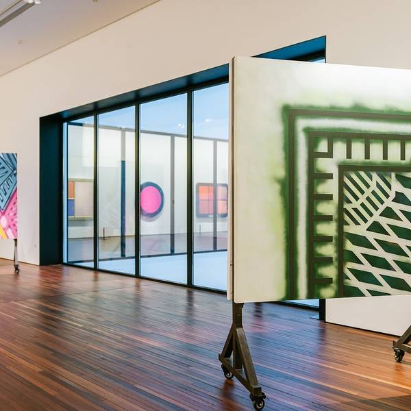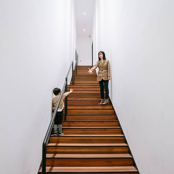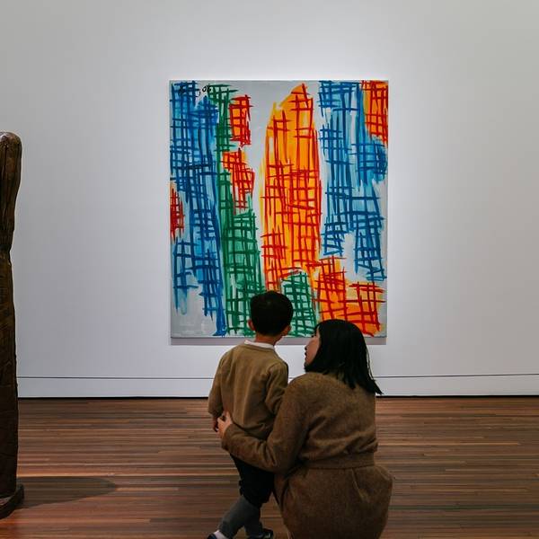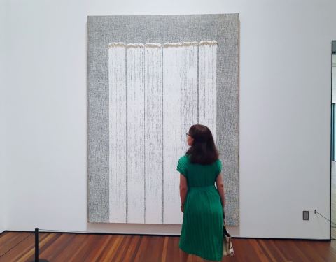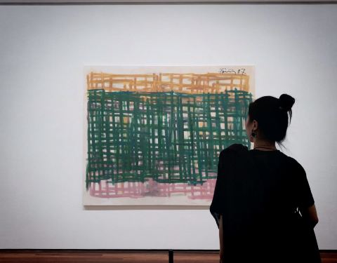 恍惚间闯入一幅中国画,它有着中国画的最高境界——留白。去松美术馆,看展是一方面,另一方面是去发现:越是简单简洁的,越是具有更多的包容。馆内目前的展叫做“隐形于色”,汇集了不同年代的13位艺术家的精选作品。概念,波普,书法,光线都是展览中创作的灵感,从主观视角勾勒出近一个世纪以来抽象绘画的演变。这些抽象艺术,倒有几分“泰山”平日在纸上挥笔舞动的感觉,眼花缭乱的色彩搭配和天马行空的想象关联,我们放慢脚步,勇敢地,开放地,尊重地跟孩子一起讨论。