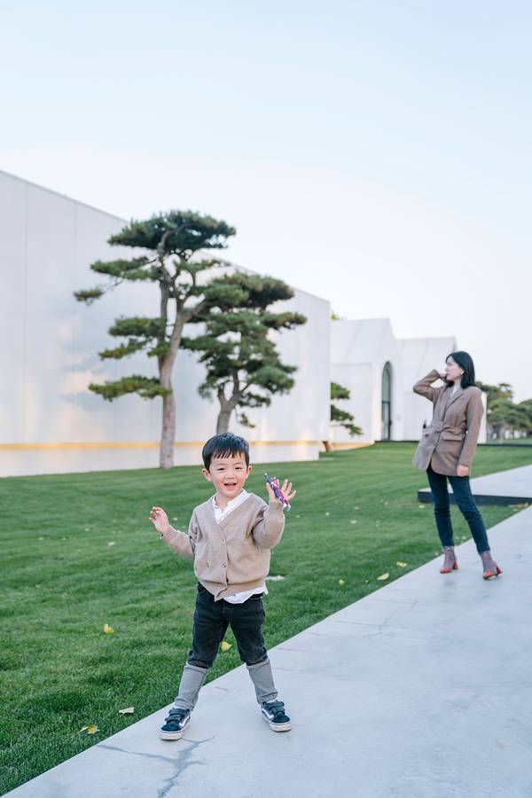 这是我一直坚持带孩子去看美术馆的初心,因为艺术,是一种很美的载体,可以由内而外的改变我们的一生。位于首都机场附近的“松美术馆”是一个“旧房改造”项目,由马场华丽变身为美术馆。两千余平米的建筑面积以及三十三亩的院落外加一百九十九棵各具特色的松树点缀,松美术馆静谧而别具一格。大院子里没有紧密的建筑,一座座简单几何形状的白色建筑,抬头是蓝天白云,低头有绿草茵茵,与我们擦身的是错落有致的歪脖松树。