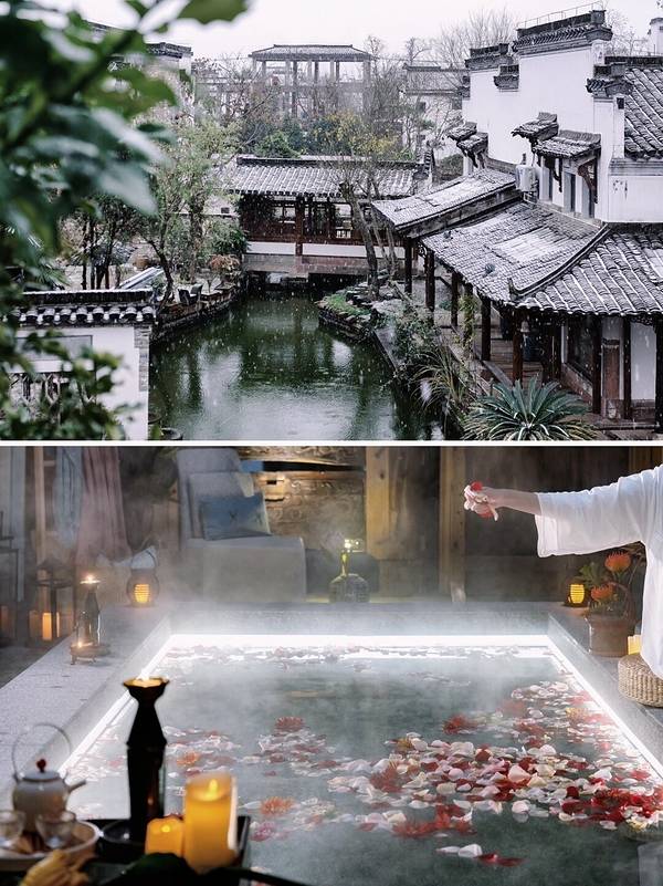 🏮 安徽省,黄山市徽州区西溪南镇西边街 — 💙 酒店环境 ▪️ 隐匿于黄山千年古村西溪南的绿意之中 ▪️ 占地面积约8000平方米,以青瓦白墙展现徽派建筑之美 ▪️ 这里曾是江南四大才子之一祝枝山的童年居所 ▪️ 经复建后,化身为今日的慰颜府,古韵盎然 ▪️ 步入其中,似乎仍可感受到浓郁的书香气息📚 — 💙 房间介绍 ▪️ 12栋历史悠久的古宅,共设有49间客房,基础房型面积24平方米起 ▪️ 房间虽小巧,却布局巧妙,装饰细腻 ▪️ 将东方美学与现代设施完美融合 ▪️ 客房内部大量使用木质元素,典雅而温馨 ▪️ 窗户边缘装饰有精致的木雕,每一个细节都透露出古典之美 ▪️ 推窗即景,让您静享悠闲时光🍃 — 💙 餐饮体验 ▪️ 提供室内外两种用餐环境,满足不同的美食需求 ▪️ 室外是绿意盎然的草坪与星光璀璨的夜空🌌 ▪️ 室内则是风格时尚的现代餐厅 ▪️ 主打正宗徽菜,食材均选用当地有机产品 ▪️ 徽州酱排、粽叶排骨等地方特色佳肴,滋味地道😋 — 💙 汤泉享受 ▪️ 慰颜府的帝妃汤泉,宛如尘世的“华清宫”,宁静而优雅 ▪️ 9座汤泉散布于各个古宅院落之中 ▪️ 汤泉之水来自西溪南的深井,富含多种矿物质和微量元素 ▪️ 游客可根据个人喜好,在汤泉中加入艾叶包、玫瑰花、牛奶等 ▪️ 让身心的疲惫在温润的泉水中消散于无形☁️ — 💙 周边游览 ▪️ 西溪南古村落,感受历史的沉淀 ▪️ 潜口民宅博物馆,体验传统民居的魅力 ▪️ 唐模景区,欣赏自然与人文景观的和谐共融