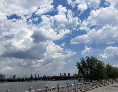 边上有新建的北湖风景区。白天具有金属光泽,极富有未来感,寓意着沈抚新城面向未来,昂扬向上的豪迈气概