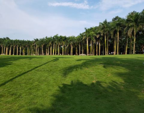 棕榈园位于青秀山风景区中心的环山秀坪地段,占地14.2公顷,这里生长着100余种6000多株棕榈植物,特别是成片的、高大挺拔的棕榈树,带给人们典型的亚热带风光,很有在东南亚国家异国他乡的感觉。棕榈园的旁边有一个很大的草坪,很多家庭带着孩子在草坪上玩耍。棕榈园中也有一些人工造景,那几十个表情各异、栩栩如生的儿童石雕堪称艺术杰作。棕榈园旁边还有一个水上乐园,不过我们去的时候没有开放。