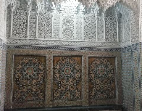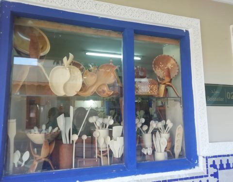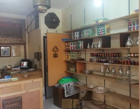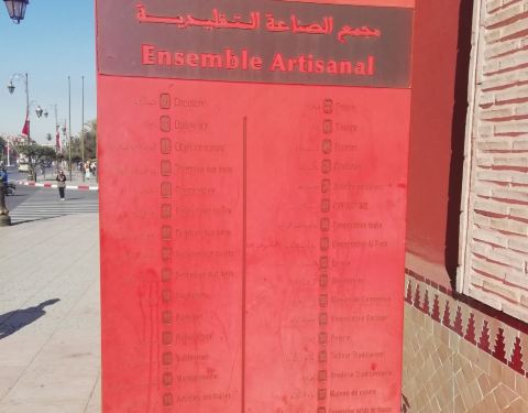 【位置】离大广场的马车道一百米吧。步行可达。 【布局】之前两次在马拉喀什都沉浸在市场里闲逛,这次路过这家,进来看了才发现,真是个宝库。进门廊间就是仿老城里的马赛克取水池。进去以后一片院子,露天桌椅,又有咖啡小食等提供,给游客休息用。房间按1开始编号,每个房间都展示兼售卖不同种的工艺品,有些还有工匠在现场演示。很多物品明码标价,省了很多口舌。 如果不想去鱼龙混杂的市场淘金,可以来这里,把马拉现有的手工艺品一网打尽,且价格还算合理。