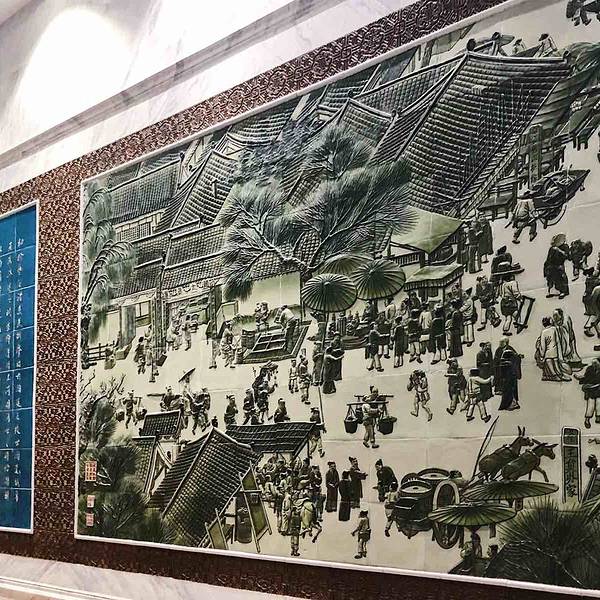 免票登记进入。开放时间是朝九晚五,周一闭馆。刚好在住的酒店附近,就走去看看。展厅在二楼,展出的陶瓷器似乎大部分都属于民国年代,有简单也有精致的,连冲水马桶都包含在内。一楼大厅墙壁上的清明上河图,也是值得仔细欣赏。