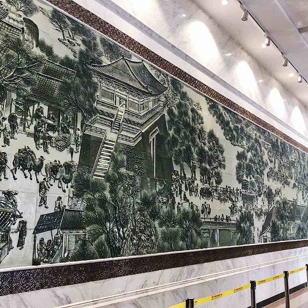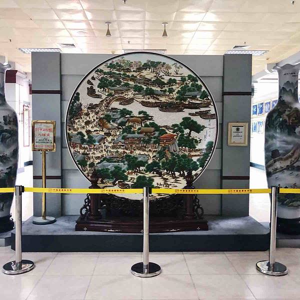 中国瓷都陈列馆 📍地址:广东省潮州市湘桥区新风路枫二新村南门对面 走进潮州,了解潮文化,从陶瓷开始。潮州陶瓷历史悠久,积淀深厚。 早在六千多年前,潮州的先民便于此业淘,而出士的商周至汉唐陶瓷器,也证其绵延。 走过石阶进入一楼大厅,迎面墙上是一幅长长的浮雕作品。 第一眼看以为是青铜制作,走近细看,才知这幅长62米,宽2.9米的《清明上河图》。是由潮州本土陶艺大师邱树江主创完成。 二楼精品展厅,目前世界上最大的瓷挂盘,直径2.15米,盘中彩绘的是《姑苏繁华图》,也叫《盛世滋生图》。 现在潮州已成为全国最具活力和发展最快的陶瓷产区之一。