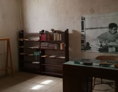 敦煌研究院院史陈列馆,在敦煌莫高窟景区里面。 敦煌研究院院史陈列馆,有首任院长常书鸿的办公室,还有他的画室和一些画的展示。还有前任院长段文杰的办公室。 那些守护莫高窟的人,都是一律的简单、朴实,在艰苦的环境里,用对艺术宝藏的热爱,坚守着,努力着。 在这样一个满天风沙的环境里,初建当时连自来水和电都没有,所有在敦煌坚守阵地、守护莫高窟宝藏的人们,他们是崇高的、伟大的。