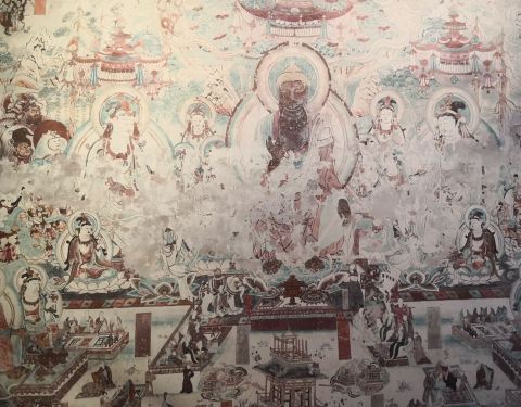 又名敦煌藏经洞陈列馆,利用原莫高窟下寺改建而成,门票包含在莫高窟门票里面,免费参观。由于时间有限,走完了正规的行程,来不及去美术馆,就在对面的陈列馆看看。馆内陈列着跟藏经洞有关的文物,包括流失到国外的敦煌遗书和绘画的复制品,藏经洞的发现和被劫掠的历史回顾,以及敦煌学的发展现状介绍。陈列馆不大,虽然是绘画的复制品,但画得很精细很美,是了解敦煌的好去处…