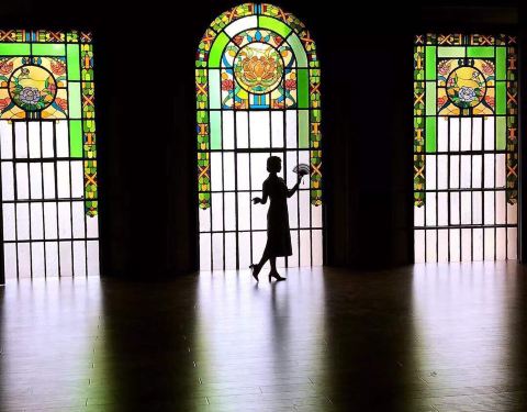 胶济铁路博物馆的"浪漫花窗"! 有机会到胶济铁路博物馆,拍摄平时并不在观众展区的“浪漫花窗",太文艺了!让我看到了,博物馆里不仅是黑白印象,更有独特的色彩斑斓。 胶济铁路博物馆二层柱廊后三个拱形落地花窗,是100多年前胶济铁路济南站建筑的原物。当年,凭借窗上彩色拼花玻璃的透射,房间愈发显得柔和舒适。穿过花窗举步迈出厅外,在由爱奥尼克精美石柱高挑的二层平台上品茶小憩,远眺商埠,可以感受胶济铁路济南火车站的美好时光。 如今,这座百年建筑已经化身成为胶济铁路博物馆,那三个原汁原味的落地花窗也成为整座建筑最有美感、最具灵动的地方。 建筑是凝固的音乐,音乐是流动的建筑。浪漫月圆夜,登上博物馆二楼天台,仰望一轮明月,时空交错间,音乐似月光般流淌在每个人心间,聆听着旋律之诗的奏鸣。百年建筑与古典音乐不期而遇,以旋律和诗意穿针引线,引发音乐与建筑的对话与共鸣,创造着旋律与诗意的四季交替!