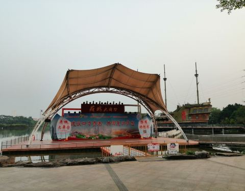 步行绿道十分宽敞舒适;沿湖边走风光无限,青花绿柳垂岸,湖面群鸟飞翔,人们休闲娱乐活动场设施齐全,翼王石达开铜像立于湖中心值得一游!