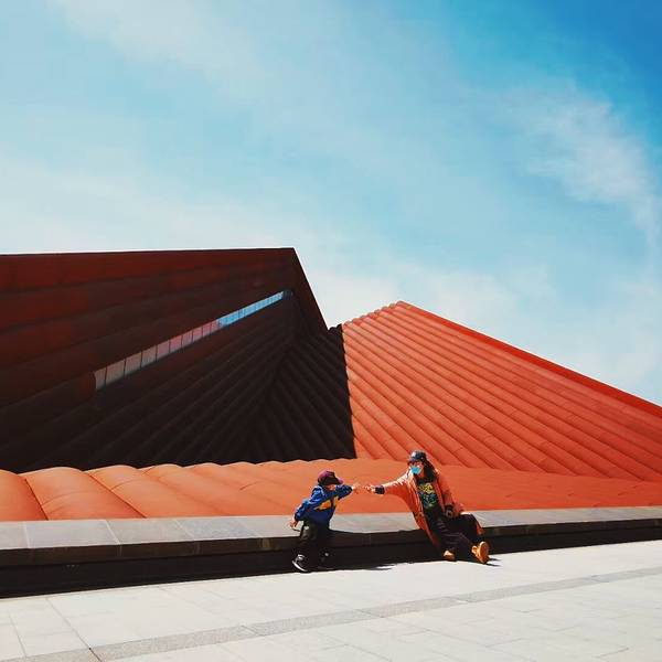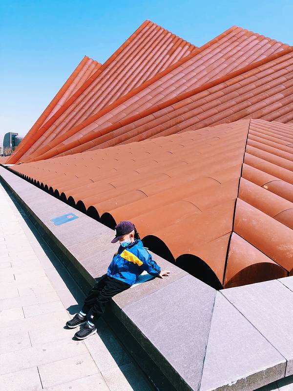 五一期间自驾前往大同市内的景点,也是需要勇气的! 比如 参观馆展系列。有一处免费又好逛的小众展馆,还是被我们找到了!未建好就已经火出圈儿了的美术馆,到底它美在哪呢?来了才发现,真的有被惊艳到! 因为还在建设中,所以前来观看的人们,无一例外都是为了这个红顶,甚至已经是 大同 新晋网红打卡地!砖红色的金字塔式几何外形,四个高度不等的三角锥形相连形成金字塔建筑布局,独树一帜,艺术感极强!这个被称为“21世纪的美术馆”,是由英国福斯特及其合伙人建筑事务所设计及 中国 建筑设计院设计的。外观设计元素采用金字塔式几何外形,四个相互连接的金字塔以富有动感、逐渐上升的方式排列起来,形成宽敞宏伟的巨大展厅,据说内部可以用于放置超大型艺术作品。对于艺术家而言,这个具有三维雕塑性的空间极具挑战性;对于参展艺术品而言,这种建筑形式既能对展览空间提供一具有强烈对比的背景,也能让建筑本身融为艺术展览的一部分。而对于我们这些,有点审美和艺术细胞但又拿不上台面的观赏者来说,在艺术氛围浓郁的场地上凹个造型就满足了。正所谓,内行看门道,外行看热闹,说不定就能在小一辈人的心中种下一颗艺术细胞的种子,有望它能生根发芽呢~据说,大同美术馆比预期完工计划晚了7年之久。但也并不影响它的独具匠心的设计感。凭着仅有的艺术感觉,胡乱地构着图,其实,在这里无论哪个角度、怎么拍都很美的。这也是火出圈的原因了吧~【攻略tips】 √大同市御东新区太和路西京街交叉口,在大同博物馆旁,远远的就可以看到这个形状比较个性的建筑物。 √自驾或乘坐66路公交车,直达美术馆西门。 √有免费停车场。要么早来要么临近中午来,停车位紧张,目前可停在路边。 √来之前看好天气预报,注意防风保暖或防晒。 √目前还在建设中,房顶处是开放可拍照。周边紧邻博物馆和图书馆。时间充足,可以一起逛。 √免费。 √红顶不管哪个位置、哪个角度拍,都很好看。服装建议选白色、蓝色、黄色等,比较出彩。墨镜、风衣、渔夫帽都是拍摄的最佳拍档。天晴的时候,原片就很帮了! √房顶建筑已经被保护起来,不可以站上去拍照。爱护环境,带走垃圾。