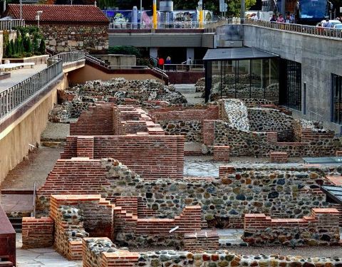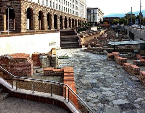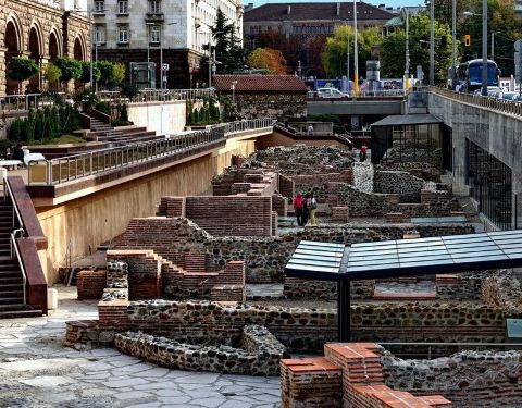 公元前29年,索菲亚被古罗马帝国所占领,给这个城市命名为“色迪卡”,这也是索菲亚最早名字的由来。古城有城墙,城门要帮他,也是索菲亚最早的居民区,这里有许多公共建筑,住宅,输水管道等等,如今这里的地面就是索菲亚的市中心,而地下就是古代色迪卡古城的露天博物馆,出土了许多古罗马时期的珍贵文物。可以说这样的博物馆设计是很有想象力和震撼力的,所有的古迹都照射的到阳光,可以看到天空,现代的人们坐在电车或走在大街上,向下俯视,又可看得到数千年前珍贵的古城遗址,时刻交错,上下千年,似乎给人穿越一般的感觉。妙不可言 随缘看世界