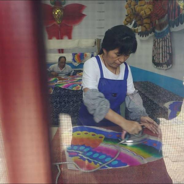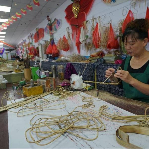 风筝有多少个种类?这是我看完风筝博物馆才知道的。原来风筝分为串式、硬式、板式、软式、立式、特式。比如我们小时候看过的蜈蚣风筝就是串式的,硬式的很多就是燕子等造型了,而在这里还有的是立式风筝,这是我很少见到的,它能做成一个灯笼的形状飞起来。我们小时候常见的燕子风筝,就是杨家埠很擅长的,馆里能看到超大的风筝,也有中小型的,甚至还有微型的风筝。而风筝的制作工艺至今还保留着,我们在制作工坊里看到了明朝风筝技艺的传承。竹子依然是今天制作风筝不可替代的材料,即便轻薄的塑料已经可以替代,甚至超越竹子来进行塑性,但这里依然用传统的竹篾来扎出风筝的形状,必要的时候动用刀,甚至用火焰灯喷烤竹子,让它有一个扭曲的形状。与此同时,风筝的面也在紧张制作中,具有韧性的纸张是经过特殊处理的,在上面悉心作画需要有经验的老工人一笔一笔勾画。虽然印刷已经非常廉价,但杨家埠的风筝都是独一无二的——心情好和心情坏的时候,画工的笔触都是不一样的。最后熨烫一番,扎起来的就是风筝了。值得一提的是,杨家埠做出来的风筝,一定要经过试飞才会交付,即使有时候风力不大,只要不是完全无风,试飞的师傅还是能够让每一个风筝飞起来。试飞之后会根据实际状况做最后修改,比如调整一些平衡方面的问题,让风筝都能够更顺畅的起飞。我以为今天的风筝早已经是机械化生产了,没想到还在保留着最原始的手感。据说今天的年轻人已经很少学这个了,这几年潍坊开始重视非物质文化遗产的传承,开始有一些年轻人也加入到其中。