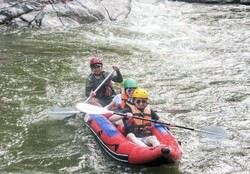 白河漂流,非常开心的一个行程,因为人少,因此玩的非常尽兴。这边会给游客准备漂流的皮划艇,非常结实,而且漂流过程也非常的刺激。孩子玩的很开心。