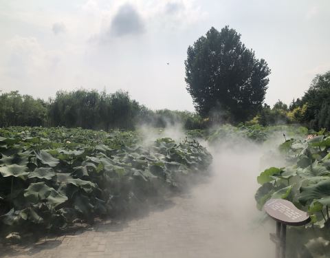 ...前往,荷塘在东南角,虽然不大,但种类很多,分别在不同的池子里,还增加了喷雾设备,有点仙境的感觉