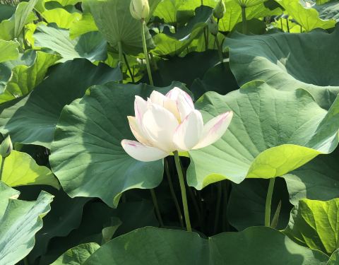 蓝天白云清水碧树鲜花,天然氧吧。 5月中旬的开始,从北门进入。天高云淡,绿树成荫。草丛里各种小花,走到湖边,浩渺碧水,沿着湖边走很是惬意。往回有,经过园丁数十年辛勤培育的玫瑰花树,枝头鲜花绽放,美到无语去赞叹。有空一定要去看看。能玩三四个小时。