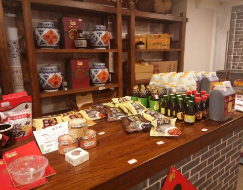我就去了第一层,好像楼上还有内容,因为对第一层的东西兴趣不大,加之人比较少,没有再上楼。 第一层是一条街,两遍摆着摊,似乎是卖东西的地方,可以选上要的东西然后去吧台结账,有个卖各种醋的摊位挺好玩的。刚进大门有个茶室看起来不错。