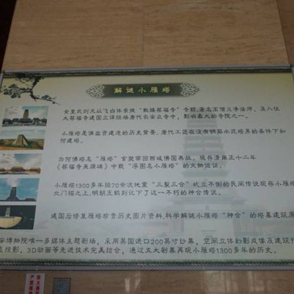 ...有一个观影厅专门讲解小雁塔的建造历史、名人典故及三裂三和的奇迹,不过这个影片需要另外收费60元