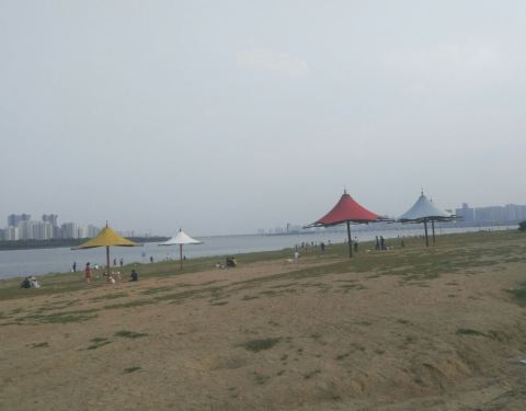 本以为这阳光沙滩可以下水游泳的,但不知为何没人下水,也都是在玩沙子,可以是水太脏了。其实这沙子很粗,也零零散散的生长着草...到是这看看夜市不错。
