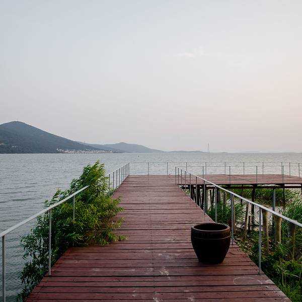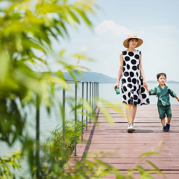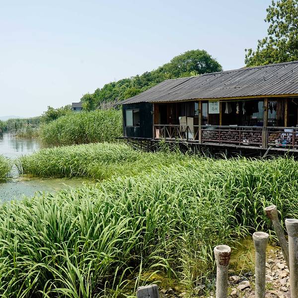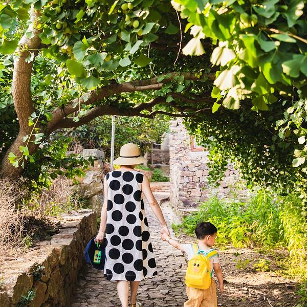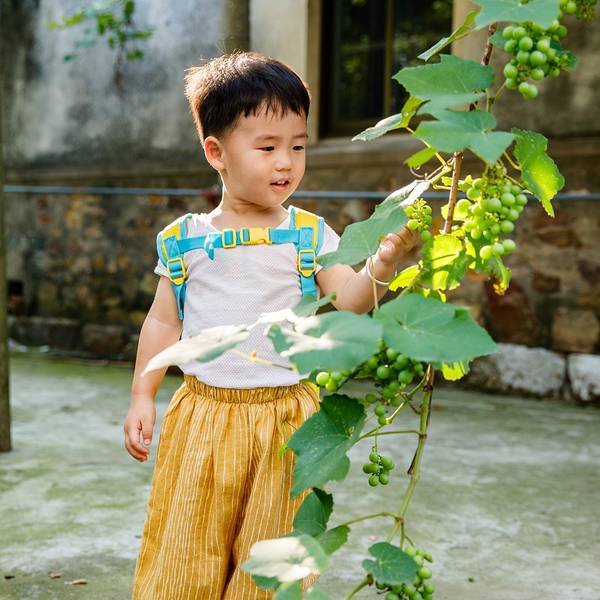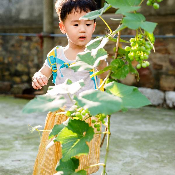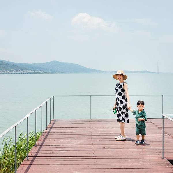 地图中,余山岛是一座四面环水的小岛,距离 太湖 东山岛 不远。第一次读到这座小岛的时候,只知道这里的年轻人都陆续离开了,只剩下村子里的老人。其余便无更多介绍了。在 东山岛 的环岛路有一个小码头,我们停了车卸了行李搭民宿的快艇上岛。岛上只有一家民宿(大乐之野),目前总共有3幢小别墅。我们住的是日出小别墅,顾名思义,这是一栋躺在床上就能看到日出的房子,二楼的卧室有一面墙都是窗户,只可惜睡懒觉的我们与此无缘。房间的一层是起居室和开放的小厨房以及洗漱区。挑高的客厅很是自在。上岛的行李中不乏水果,可来了才知道,民宿准备的水果就已经足够了,甚至盘中的杨梅胜过我们自己从 杭州 带来的。阿肉最喜欢的椅子,总是窝在这里啃东西吃。 果盘里的桃是肉哥的心头好,看着他躺在椅子上哼哧哼哧的啃完了一整个大桃子。相比之前几次,现在孩子大了,出门比之前容易多了。也就是带几身换洗衣服和尿布湿罢了。餐具我只随身带一个小叉子和一次性围兜,最多再带点湿巾就完全够用了。这个7个月就跟着我们一起出门儿的小婴儿,如今已经是个会捣蛋的小男生了。一刻都闲不住的肉哥,总会发现各种新奇好玩的地方。这扇二楼的窗户,就已经够他忙的了。房间的另一侧窗户朝东,清晨可以看到第一缕晨光从 太湖 上升起。原本的午睡时间,因为来时路上的一个瞌睡而打破。这也是意料之中,这个年纪的孩子,对新鲜环境的好奇远超过午睡。 用被子和靠垫造tunnel,躲起来接着又闪现,乐此不疲。没有电视机的房子,但是有一个网络投影仪。阿肉的Paw Patrol,给我们20分钟安静的时间,供我们收拾东西。不睡午觉的午后,就让下午茶来填满。看着盒子里的蛋糕,巴巴的小眼神。荔枝杨梅桃子蛋糕,挨个吃了个遍。一边也等着日头没那么烈了再出门。待到日头西斜,我们才慢悠悠出门。此时的太阳斜斜的照在树上投射到家门上,一个个圆圆的光斑煞是好看。这小岛虽然村民不多,但果树却不少。环岛走一圈不过一个钟头光景,但一路上,成熟正当时的杨梅,即将收获的葡萄,刚冒出果子的柿子、橘子、梨、银杏,更不要说小径两旁的茄子、黄瓜、番茄等蔬菜了。一路走一路教肉哥认周围的果树,鲜活的植物比绘本要生动的多。 肉哥这个摸摸那个看看,忙得不亦乐乎。这个年纪的小朋友对于树枝情有独钟。捡了根小木棒不够,吵着要把这一大根枯树枝都带回家。这是我第一次见到杨梅树。原来摘杨梅是一件那么辛苦的事情:特别高大的杨梅树四周会搭脚手架,方便爬上树采摘;而小的杨梅树,则用旧衣服破布透包住树干树枝,直接沿着树干爬上去。 杨梅树上随时会有成熟的果子掉落下来。余山岛很小,环岛上的小路走一圈也不过一个小时。岛上有两个小村子——东湾和 西湾 。两个村子相距仅500米,走走逛逛很快就能走完一圈。第二天早晨,隔壁一栋楼的住客,离岛前送了几个岛上的番茄给肉哥。从不吃生番茄的肉哥,居然吃的美滋滋。如此有机蔬果不可多得,小朋友挑剔的味蕾最能分辨。小岛比我想象的更原始。 这里2002年才通电,也就是说,在这之前,这里的人们过的都是日出而作日落而息的生活。纵使现在通电了,这里依旧没有有线网络,只有手机的4g网络覆盖。 因此这里的村落也保留了旧时的样子,除了餐厅、民宿以及与之配套的码头是 新建 的,其他都保留着原来的样子。小岛上几乎没有商店,唯一的一个餐馆,就在大乐之野附近,所以住客几乎都在这里用晚餐。晚餐的菜品是提前一天预定的,我们要了半只土鸡炖汤,一份红烧杂鱼,一份蒜泥南瓜叶。鸡汤是因为肉哥吃饭离不开炖的汤;杂鱼则是 太湖 特色,浓油赤酱倒是很有家乡味道;至于南瓜叶,因为几乎没有可能出现在自家餐桌,所以菜单上看到时自是十分兴奋,不愿意错过。晚饭后跟着手机电筒带我们回家。家门口居然蹲着一位小朋友——青蛙/蛤蟆。正当我心里发慌的时候,肉哥蹲下来一脸真诚的说:hi,青蛙,你好呀~酒店的儿童洗浴用品,正巧应和了诚品正在进行的小王子75周年纪念展。早饭是传统的中式早餐:白粥,包子,玉米,一块腐乳一碟酱菜,一杯豆浆。这个配置对于我们大人还熟悉,但对于肉哥,他打出生以来都没吃过这么全套的中式早餐。小朋友已经日渐习惯于面包、奶酪、鸡蛋、牛油果、牛奶的早餐。 迅速吃早餐的动力,是去抱餐厅老板家的那只英短。猫和小朋友的智商挺合拍,倒也能和谐共处。在快离开的时候,我们恋恋不舍在码头廊桥上拍照,管家帮我们去房间拿行李。 肉哥不知怎么的拉开衣服喊光膀子。 这里适合抛开烦恼来此避世,倘若能断了手机端了网络断了与外界的联系,清心在此看几天书。 就好像那时候的文人抱着书简去山里隐居看书离开时,管家给我们带了一大筐岛上的杨梅和一大袋子瓶装纯净水。简直不能更贴心。