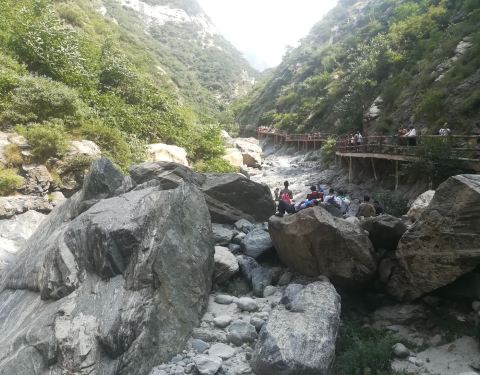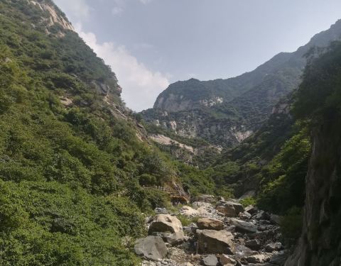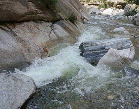 峪道窄狭清幽,山路崎岖蜿蜒,河流湍急,山石险峻