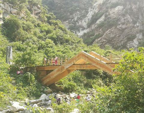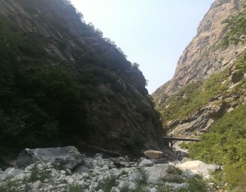 仙峪深五十余里,峪道窄狭清幽,山路崎岖蜿蜒,河流湍急,山石险峻,多处路段凿崖,加栈凌空通过