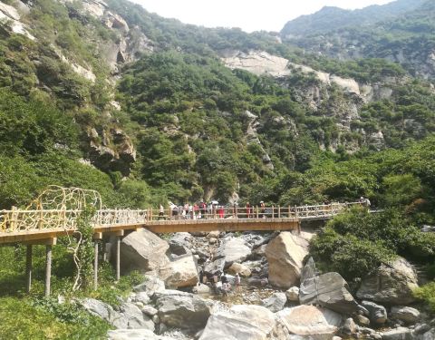 不是特别有名气它就是一个峡谷 期间山石 溪水纵横 仙峪之顶有一逍遥亭