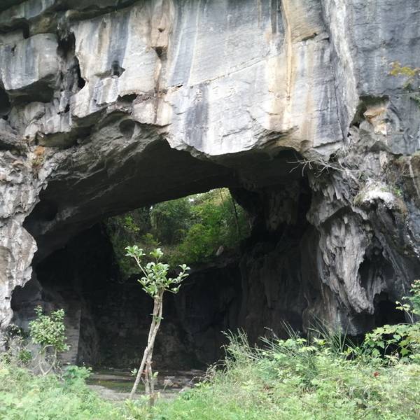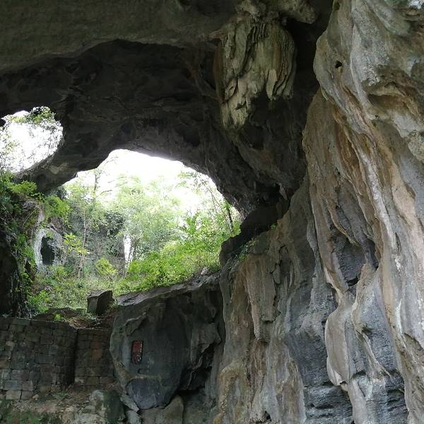 据说灌阳县月岭村步月岩附近还有白竹岩、仙家岩,三者统称竹岩。看着眼前的天窗和天生桥,走下步月岩的大厅,两旁都是钟乳石,有一边的墙上还有一些石刻,在这里回头看,上面同时有两个洞,中间有座天生桥,真是...