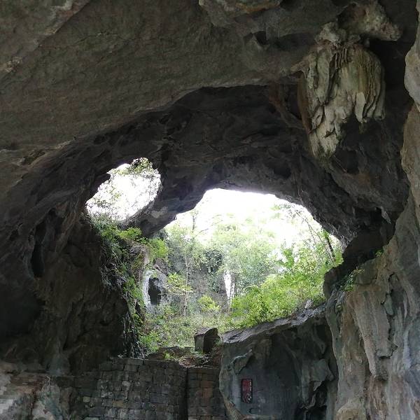 这边的洞口上方的岩石上有3个大字“步月岩”,这里是典型的喀斯特地貌,这样洞洞相连的奇观竟然...走出灌阳县月岭村步月岩的大厅,又是另一番景象,上方的天窗不见了,洞口则随着人的移动,变幻不同,像月圆月缺。