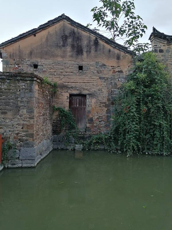 10月3日傍晚,我在灌阳县文市镇月岭古民居里游走,突然发现有一处屋门里面是一个水塘,周围都是房子,直观上给人的感觉就是房子建在水中的。周围湘南式民居倒影在水中,静美。刚好 落日时分,整个感觉很美。这水塘到底是辟邪的,还是防火的呢?