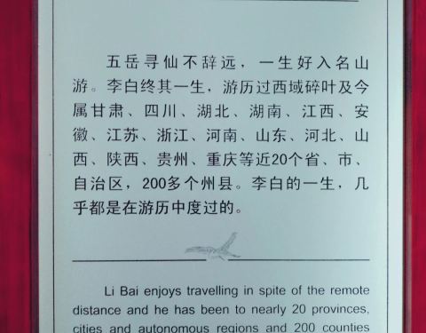李白纪念馆,位于白兆山景区门口,纪念馆面积很大,讲述了李白生平和典故,除了参观之外,还可以欣赏...