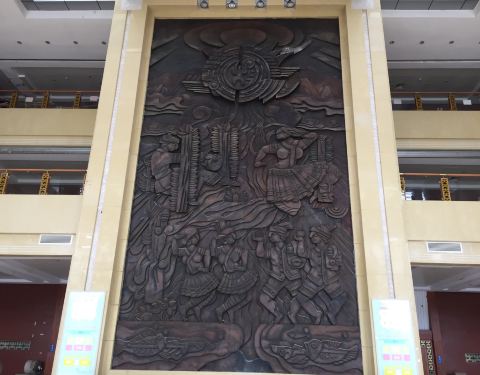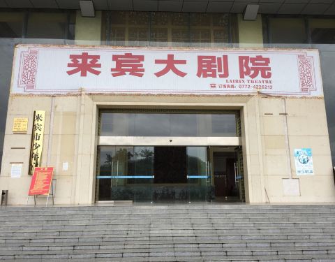 来宾大剧院位置在来宾市博物馆的旁边,都是红土色的砖墙。地方不是很大,去的时候也没有表演,大堂很高大,只是发现天花油漆有点脱落。