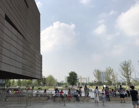 蚌埠市博物馆新馆在蚌埠市蚌山区东海大道上,靠近龙子湖景区,这里风景很棒,新城区看着一切都是崭新的,市民广场很大,很多市民在这里纳凉游玩。