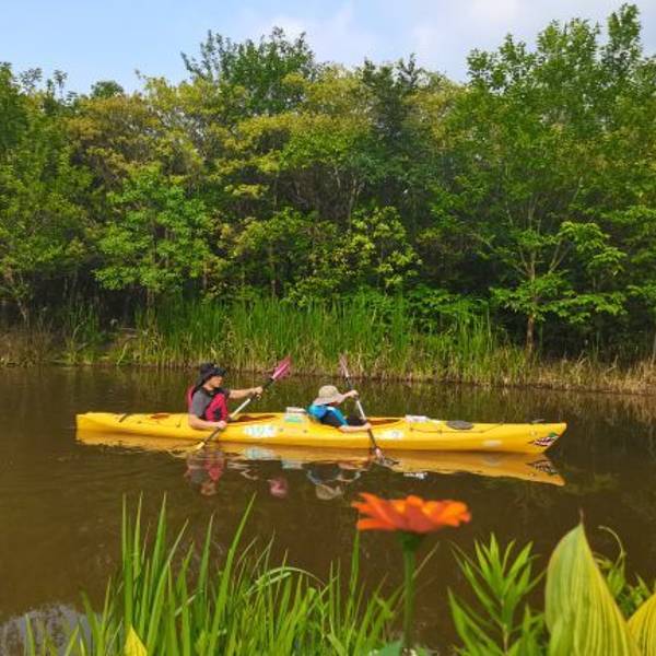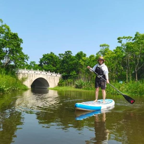 这个皮划艇在光明生态园内,位置比较难找,但是环境很好,很生态。第一次玩皮划艇,会有教练教我们怎么划,然后下水,选的双人艇,一开始不好划直线,但之后练一下就很好控制哈。玩的很开心,上班族休息锻炼好地方