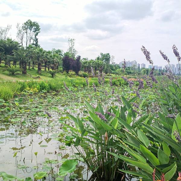 遂宁风光好。圣莲岛上风景如画,在1.47平方公里湖心小岛上,干净整洁的环境、美丽的荷塘、绿地的草坪、彩色的人行步道,鲜花盛开,树木葱郁,行进在这里让人赏心悦目,心旷神怡!