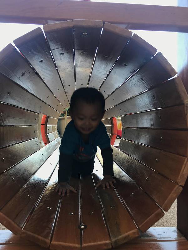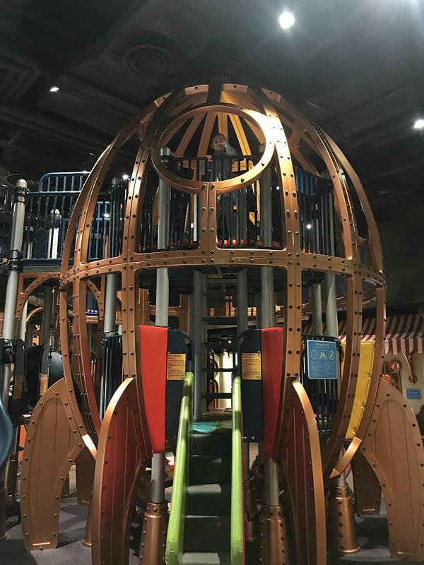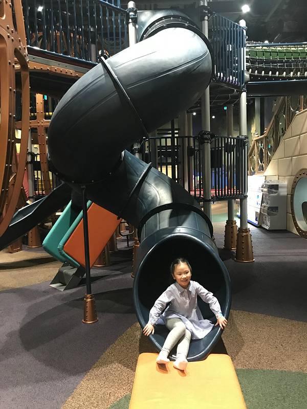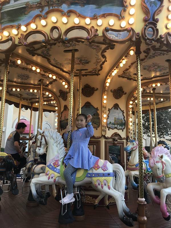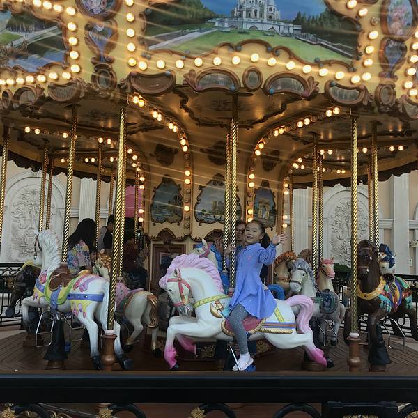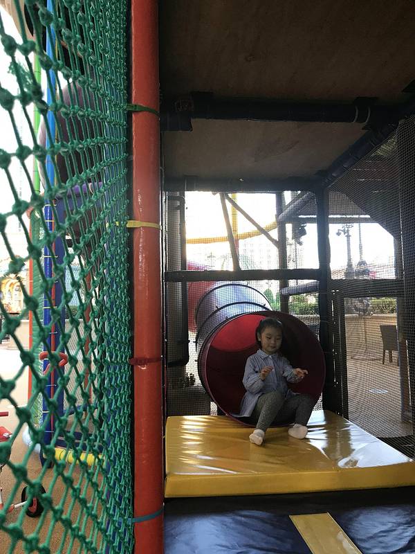逛街逛累了,就打车回酒店了 睡个小午觉,来到酒店的Q立方王国儿童乐园Q立方王国拥有超过20,000平方英尺(1,858平方米)的室内与室外空间,遍布着攀登太空舱、滑滑梯、旋转木马等各种游乐项目,无论大孩子还是小朋友都能乐在其中!同时让您可以陪同孩子一起享受欢乐时光!里面有一个旋转木马,就只有我们家在玩,女儿玩了不下10次!进门需要穿袜子和消毒,整个游玩的设施旁都有专门的工作人员看管,还有放动画片的小型舞台呦,真是个解放父母的好地方。 Tips:大人和孩子入园要穿袜子