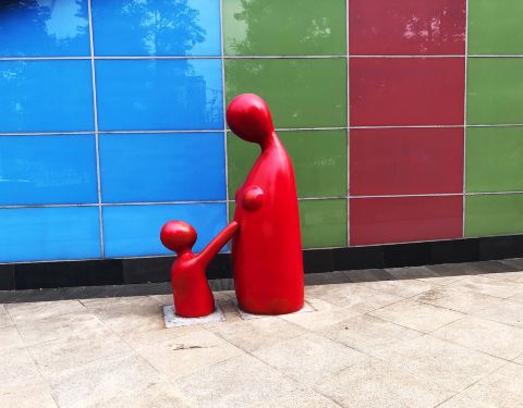 今天专门到成都市妇女儿童中心剧场打卡。远远望去,位于成都市锦江区东大路238号的成都市妇女儿童中心剧场,建在一块较高的平台上,非常高大壮观气派,在行进到剧场的途中,彩色的墙面,红色的雕塑,向人们展示着这个剧场的主角——妇女儿童,但是非常遗憾的是,今天是周日,剧场没有演出,关门了,所以没有能够拍摄到剧场里的美丽景观。