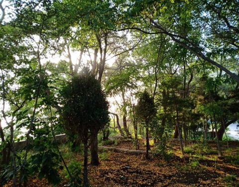 而且上山是每天门票的,山上还有革命烈士纪念碑,有寺庙,还有很多树,郁郁葱葱