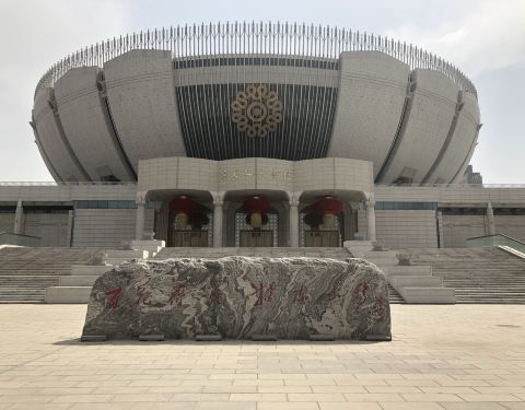 ...育馆的对面,到防时大门是关闭的,应该是有演出时才开放吧,人民会堂剧场没什么特别的,不用特意过来