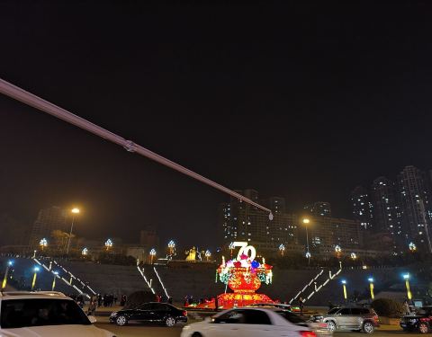 晚上去的都能感受到这是一个很大的广场,广场靠着坡地修建,有很高的看台,广场周边的绿化带还做了浮雕,有很多跳舞的市民,如果白天可能还看起来还漂亮。