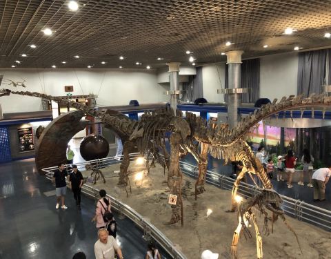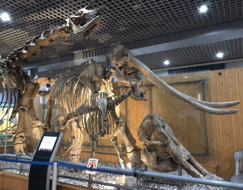 最具感官震撼的就是位于一层的古哺乳动物展厅,除了恐龙化石,还有恐龙公园